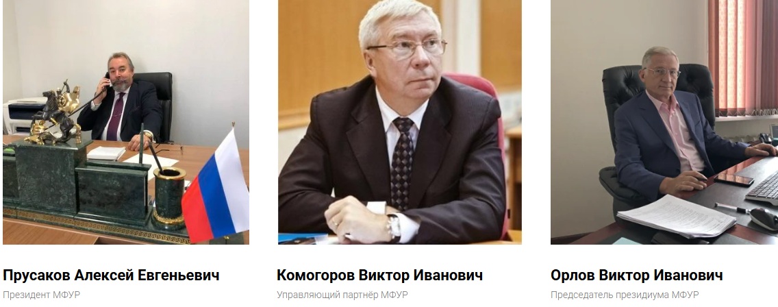 Генерал-полковник Віктор Комогоров займає посаду управляючого партнера МФУР, генерал-лейтенант Віктор Орлов — голова президії, Анна Бакуліна — віце-президент з консалтингу, проектів і сталого розвитку.