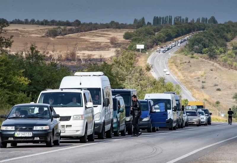 «Дорога життя». Черга автомобілів на КПП у Василівці. 2022 рік. Фото: brd24.com