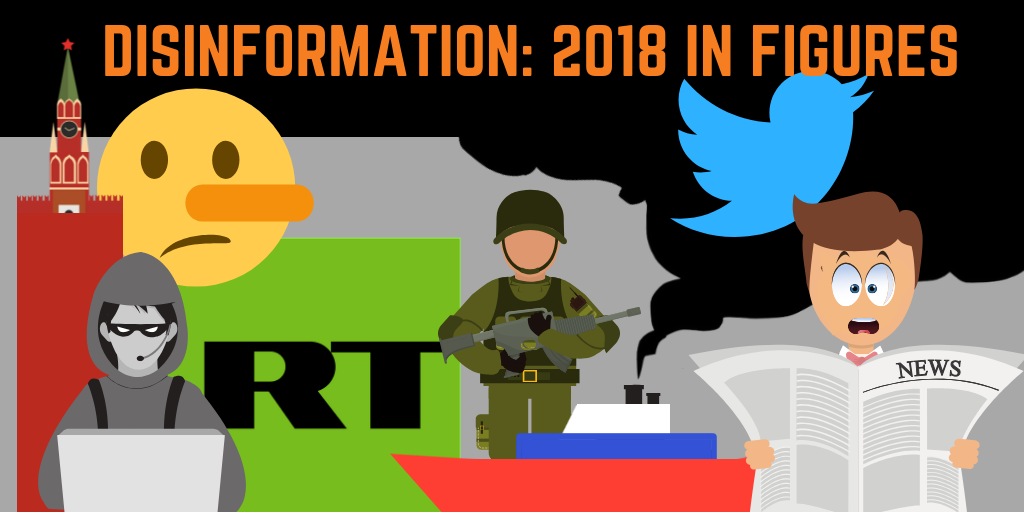 Как указывается, в 2018 году из 212 сообщений в разделе «anti-fake» независимого российского издания «Инсайдер» 60 касались Украины (включая аннексированный Крым). Так, в частности, накануне новогодних и рождественских праздников дезинформация содержалась в сообщениях российских государственных СМИ об иностранных долгах Украины, армии и о президенте страны.