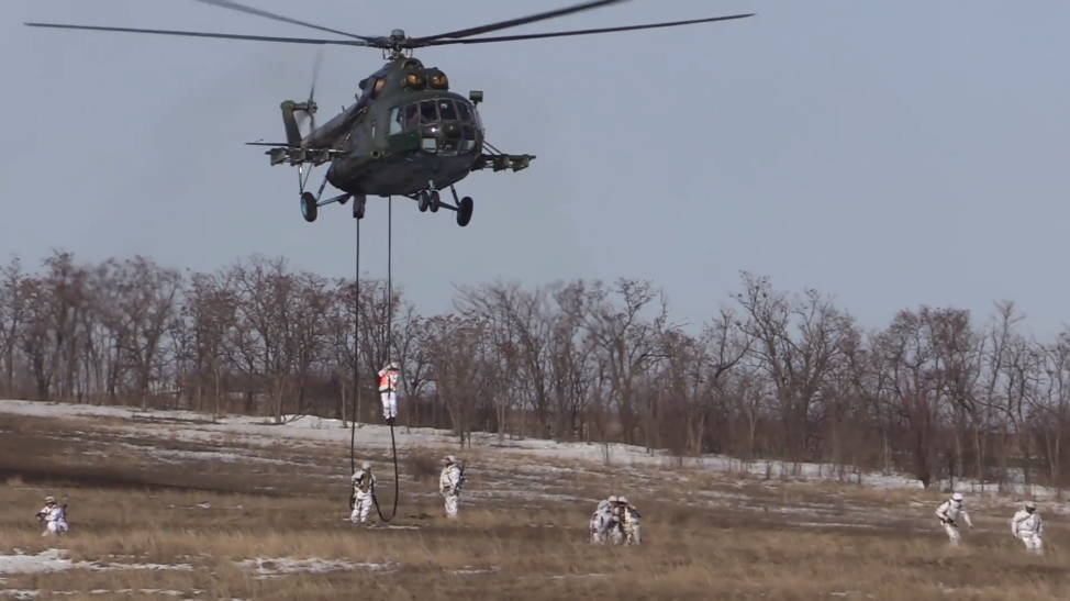«Подразделение десантно-штурмовых войск было поднят по тревоге и под прикрытием звена ударных вертолетов совершило перемещение 8-ю транспортно-боевыми вертолетами на один из флангов обороны, где выполнило задание по захвату выгодного рубежа, остановке противника, пытавшегося прорваться в глубину обороны наших войск и в дальнейшем совершило его полное уничтожение», — говорится в сообщении.