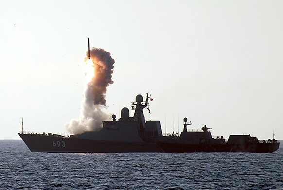 «В частности, фрегаты «Адмирал Макаров» и «Адмирал Эссен» в составе корабельной ударной группы атаковали сторожевые корабли «противника» путем условного применения по целям ракетного комплекса «Калибр», – говорится в сообщении.