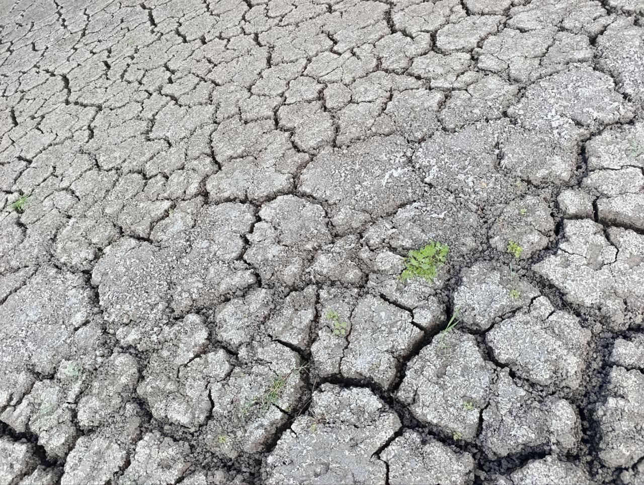- Обмелевшее Старокрымское водохранилище, которое питает водой оккупированный Мариуполь, август 2025 года. Фото: t.me/mariupolrada