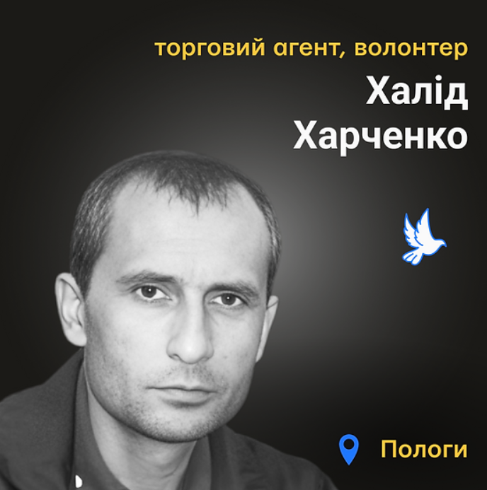 За інформацією сайту “Платформа пам’яти “Меморіал”, востаннє Халіда Харченка, який залишився в місті, щоб підтримувати Сили оборони і спротиву, бачили 7 березня неподалік магазину в Пологах. Разом з незнайомцем він сів у автівку, але вони встигли проїхати лише кілька десятків метрів, після чого потрапили під автоматний вогонь російських військових. Халід загинув від кульового поранення.