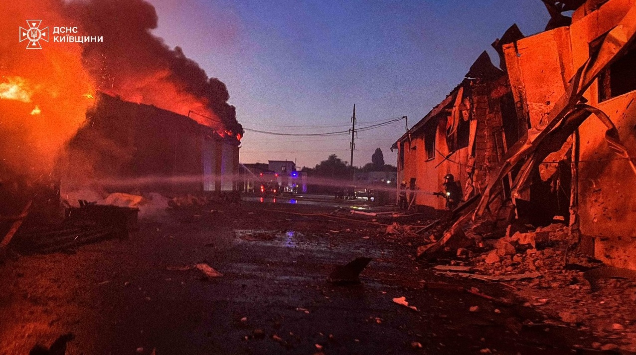 Як інформує ДСНС України, чергова ворожа атака спричинила руйнації та пожежі в промисловому та житловому секторі Вишгородської громади.