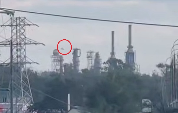 На відео, оприлюднених у Telegram-каналах, видно, що щонайменше один з БпЛА успішно атакував і вивів з ладу установку первинної переробки нафти.
