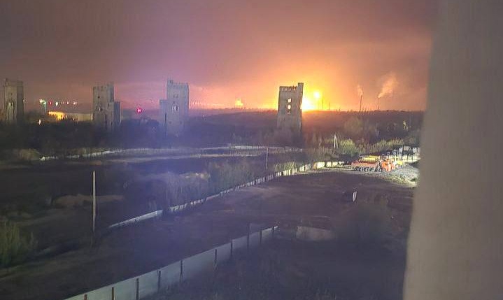 Пожар на Саратовском нефтеперерабатывающем заводе в РФ после удара украинских дронов, 20.08.2025. Фото: местные telegram-каналы