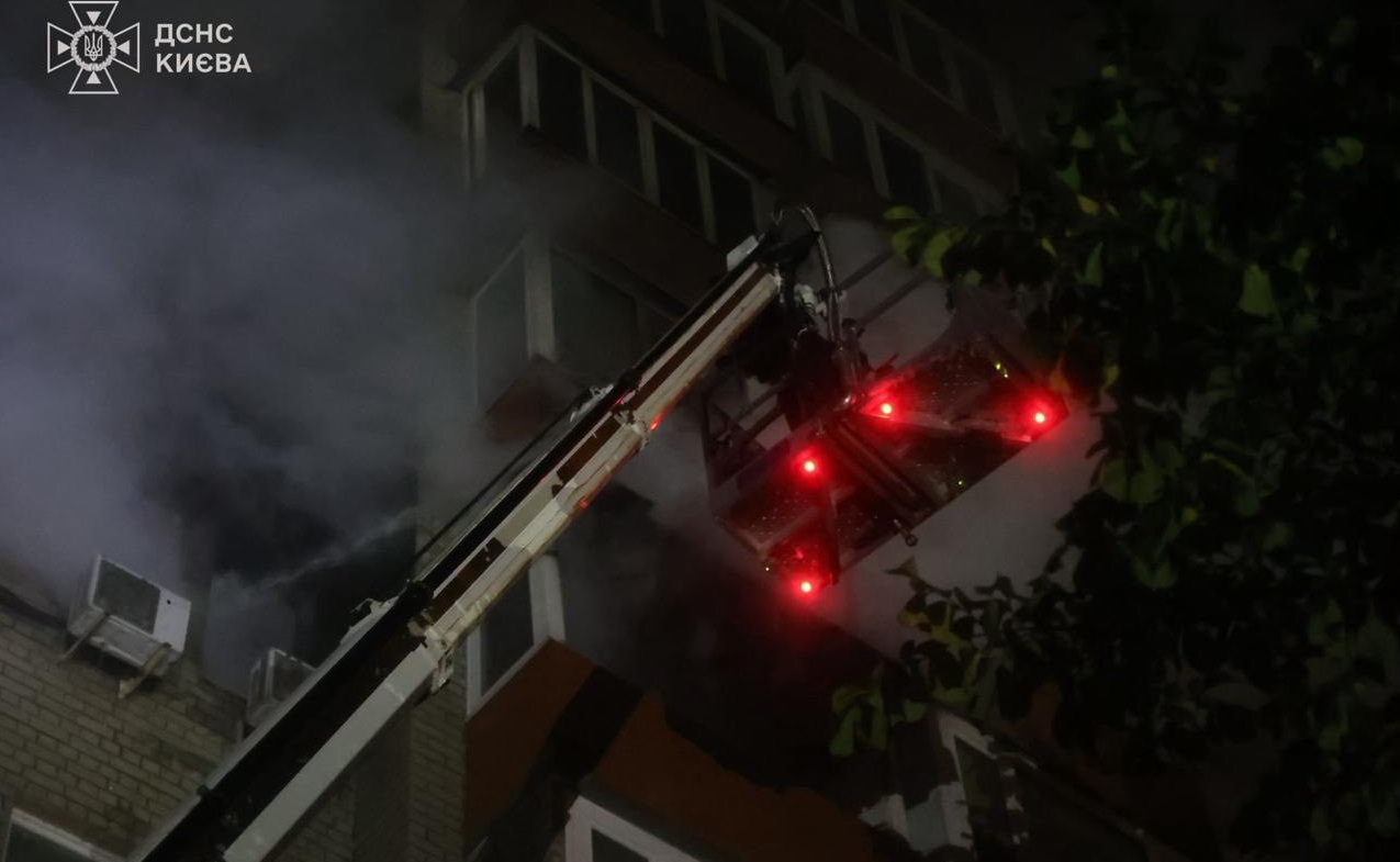 Дарницкий район: В результате попадания БПЛА горели этажи с 11 по 16 в 17-этажке.